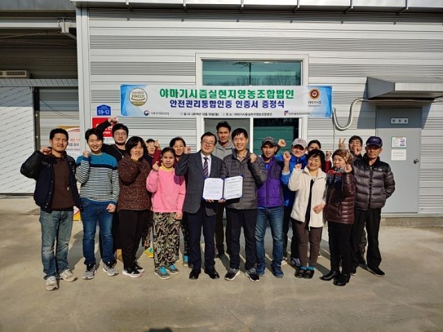 HACCP인증원, 경기도 화성의 야마기시즘영농조합법인과 경기 평택의 ㈜와이제이푸드에 안전관리통합인증서 증정
