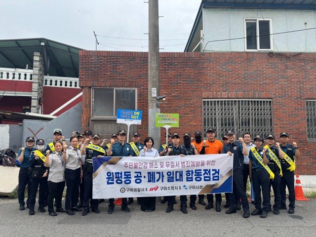 이번 점검은 최근 구미시 원평동 일대의 공·폐가에서 범죄 발생 우려가 제기됨에 따라 선제적 예방 차원에서 이뤄졌으며, 구미경찰서 범죄예방대응과, 경북경찰청 기동순찰대, 원평동 행정복지센터, 원평119안전센터, 원평 자율방범대 등 약 20여 명이 참여해 빈집 및 폐가의 안전 실태를 집중적으로 살폈다.