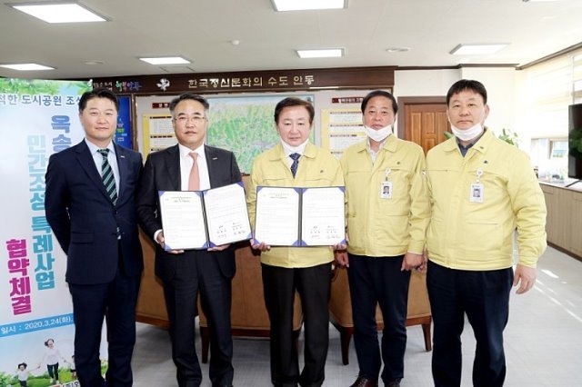 (전국= KTN) 김도형 기자= 안동시가 옥송상록공원(옥동 산 70번지 일원) 민간조성 특례사업과 관련해 사업 시행(예정)사인 ㈜호반건설과 협약을 체결했다.
