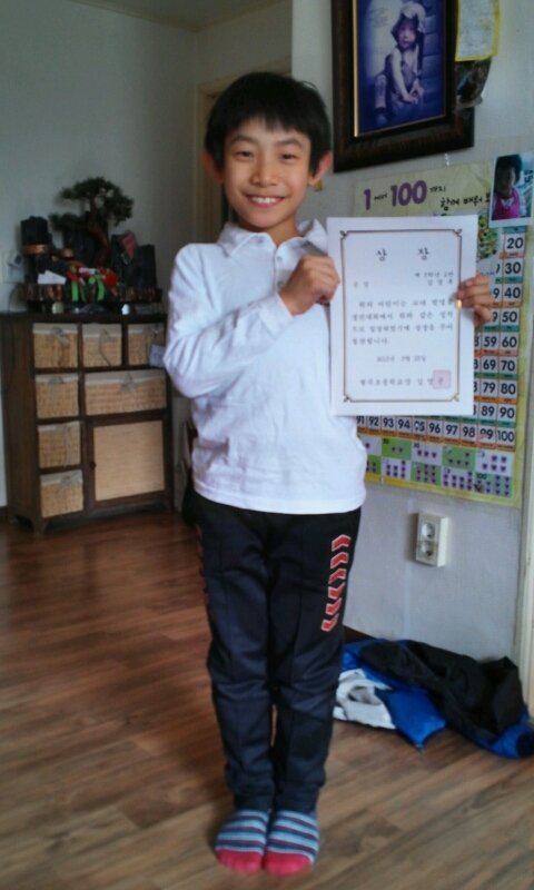 <상장을 받고 기쁜 표정을 짓고 있는 김경록 어린이>@