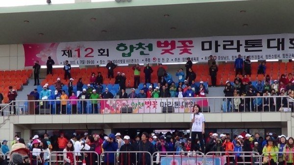 12회 합천벚꽃마라톤대회가 7일 경남 합천군 시민공설운동장에서 마라토너와 동호인 가족 등 3만여 명이 모인 가운데 성대하게 열렸다. 오전 9시 30분에 42.195㎞ 풀코스 출발을 시작으로 하프코스, 10㎞, 5㎞의 레이스를 펼쳤다