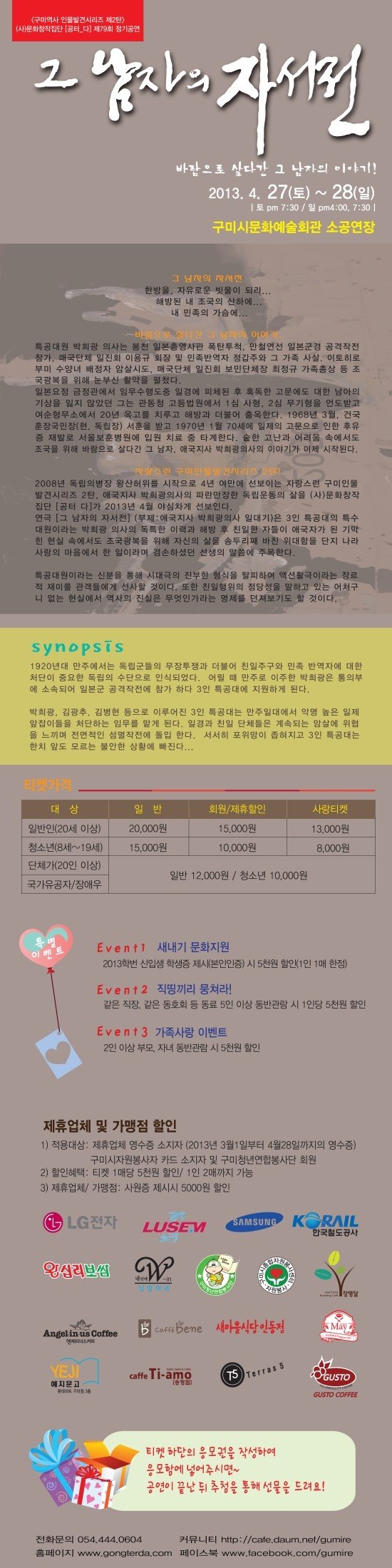 [공연뉴스] 바람으로 살다간 그남자의 이야기! '그 남자의 자서전' 4월 27일(토)~28일(일) 구미시문화예술회관 대공연!&…