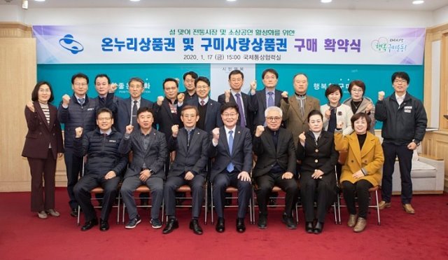 (전국= KTN) 김도형 기자= 구미시(시장 장세용)는 1월 17일(금) 15시 시청 국제통상협력실에서 기관, 금융기관, 단체, 기업체 등 20명이 참석한 가운데 「2020년 설맞이 온누리 상품권 및 구미사랑상품권 구매 확약식」을 가졌다.
