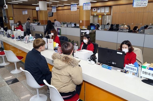 (전국= KTN) 김도형 기자= 안동시청 종합민원실 직원들이 신종 코로나바이러스 확산 방지를 위해 마스크를 착용하고 근무를 하고 있다. 종합민원실은 각종 민원 업무를 위해 시민들의 출입이 잦은 곳으로 하루 300여 명이 방문한다.