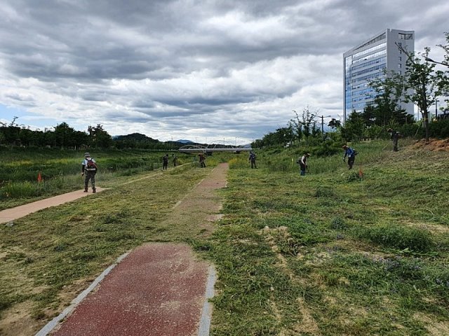 (김천= KTN) 윤주아 기자= 율곡동(동장 이우문)은 지금 여름 맞이 준비가 한창이다. 청명한 날씨 속하천변에 수풀과 잡초가 무성하게 자라면서 율곡천 산책로 전 구간(KTX역 주변부 ~ 동김천IC 부근)에 걸쳐 풀베기 작업을 실시했다.