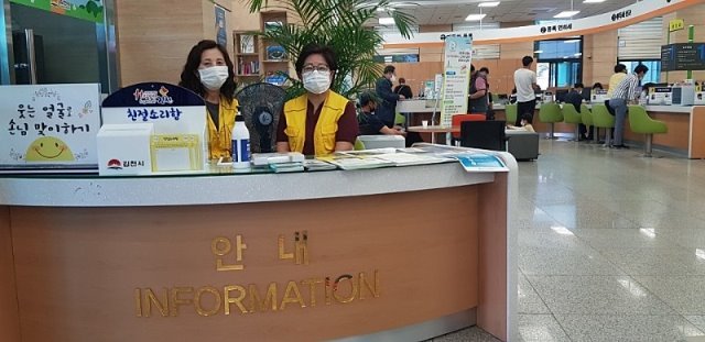 (김천= KTN) 윤주아 기자= 김천시(시장 김충섭)는 올해 1월부터 종합민원실에서 민원안내역할을 해주던 자원봉사자분들이 코로나19 사태가 점점 심각단계로 지속되는 2월 봉사자들의 안전을 위해 잠시 봉사를 중단했다.