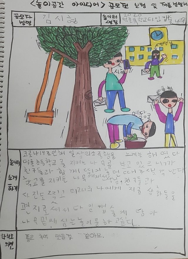 (전국= KTN) 김도형 기자= 덕촌초등학교(교장 임선희)는 낙후된 환경 개선과 학생들의 놀이공간 부족을 해결하고자 「학교 공간 재구조화 사업」을 진행한다. 이를 위해 교직원, 학생, 학부모를 대상으로 5월 18일에서 21일까지 4일간 [놀이공간 아이디어 공모전]을 온라인으로 진행했다.