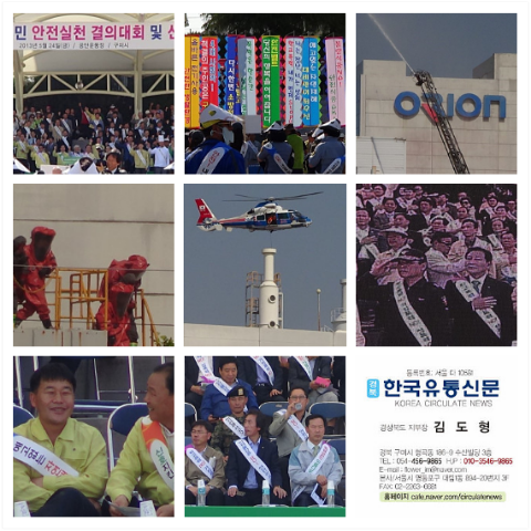 대회 행사장의 바로 건너편에 있는 오리온 공장건물에서 모의 화재로 인한 불산누출 상황을 통해 긴급진화 훈련과 더불어 인명구조 활동 상황을 생동감있게 모의 훈련하였다. 특히 이날 훈련의 백미는 경상북도 119 특수구조대의 헬리콥터 레펠을 통한 인명구조 훈련이 실제 상황을 방불케하는 모습을 통해 시민들의 열렬한 박수를 받았다.