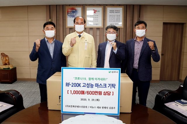 (전국= KTN) 김도형 기자= (주)K문화콘텐츠진흥원(대표 김종주)은 9월 29일 마스크 1,000매(600만원 상당)를 택시 기사들의 코로나 예방에 써달라며 상주시에 기증했다.
