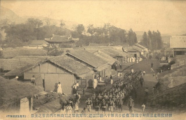 [상주박물관]1910년대 상주읍성 내 건물 모습 담긴 엽서 발견(연습을 위해 상주시내에서 출발하는 광경).jpg