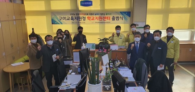 (전국= KTN) 김도형 기자= 경상북도구미교육지원청(교육장 신동식)은 2021. 1. 5.(화) 오후 3시 신동식 교육장을 비롯한 각 과별 과장, 교육지원과 가족들이 참석한 가운데 ‘선생님을 아이들 곁으로’ 실현을 위한 다가감 비전의 학교지원센터 첫 발걸음을 힘차게 내딛었다.