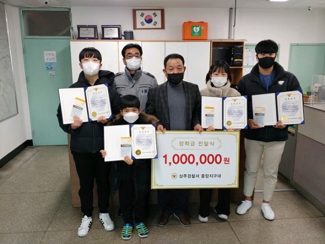 (전국= KTN) 김도형 기자= 상주경찰서 중앙지구대(대장 이춘규) 생활안전협의회(위원장 이인규)는 지난 10일 중앙지구대에서 설 명절을 맞아 학업이 우수한 관내 재학생 4명에게 장학금(100만원)을 전달했다.
