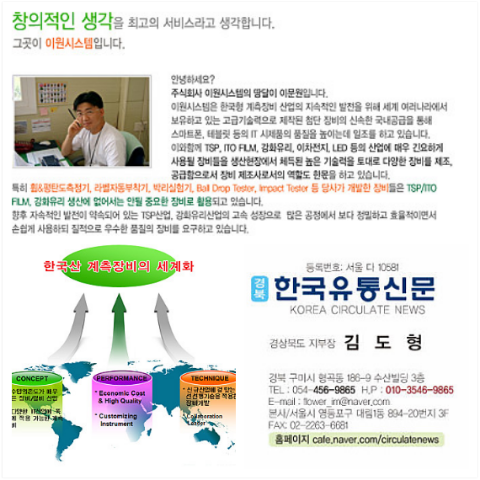 (주)이원시스템 이문원 대표 인터뷰-계측장비 전문기업의 21세기 비젼과 나아갈 길 <한국유통신문>