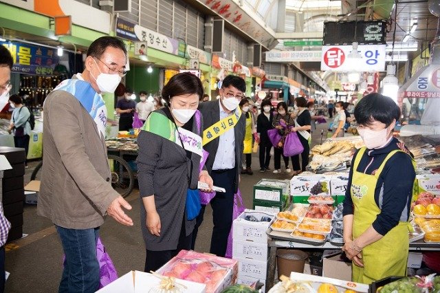 특히, 장세용 구미시장은 손수 물건을 구매하면서 시장 상인들을 격려하고 애로사항을 청취, 소통하는 현장 행정을 펼쳤다.