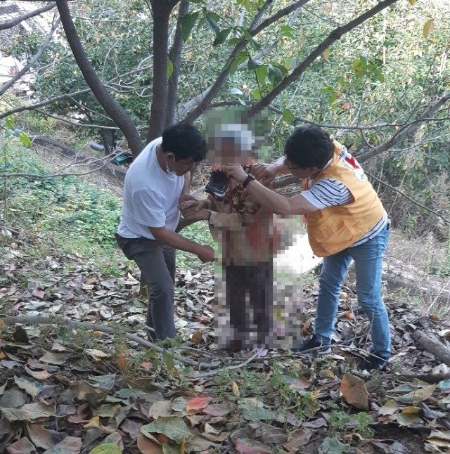 (전국= KTN) 김도형 기자= 상주경찰서(서장 안문기)는 ’21. 10. 3.(일) 11:25경 ‘치매어르신이 보호자 동행없이 집을 나갔다’ 라는 112신고를 접하고 대한적십자사 봉사회 상주지회 20명과 함께 낙동면 인근 야산에서 수색 중, 같은 날 15:31경 상주적십자 봉사회 정영주씨와 경찰관이 함께 실종자를 발견, 애타게 찾는 가족의 품으로 돌려보냈다.