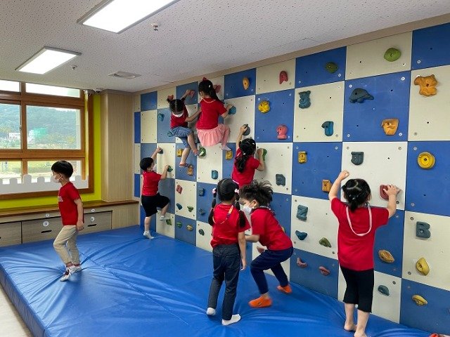 구미유아교육체험센터는 ‘즐거운 방’,‘신나는 방’, ‘씩씩한 방’,‘생태관’,‘실외놀이터’등 유아들의 흥미를 자극하는 놀이가 다양하게 준비되어 있었다. 유아들은 역할놀이 의상을 입고 뽐내기도 하고 실내암벽, 미끄럼틀, 짚라인 등을 활용하여 신나는 놀이에 흠뻑 빠져 웃음꽃이 피어나는 시간을 보냈다. 특히 알록달록 물들어가는 나무들과 코스모스가 아름다운 실외놀이터에서는 모래놀이와 자전거 타기를 하며 오랜만에 맑고 선선한 가을 날씨를 마음껏 느껴보았다.