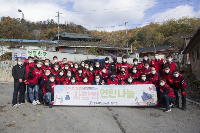 (전국= KTN) 김도형 기자= 경북 영주시청공무원노동조합은 10일 영주시청동호회와 함께 어려운 이웃들이 따뜻한 겨울을 보낼 수 있도록 사랑의 연탄나눔 행사를 진행했다.