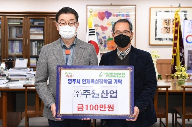 지역기업인 ㈜주원산업은 콘크리트 및 토목 자재를 생산하는 업체이다. 현재 영주시에서 정책자문위원을 맡고 있는 황석모 부사장은 2018년부터 해마다 장학금을 기탁해 누적 장학금이 총 4백만원을 기록했다.