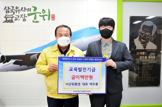 (전국= KTN) 김도형 기자=  ㈜군위환경 박무룡 대표는 지난 15일 군청을 방문하여 지역의 교육발전과 인재양성을 위한 교육발전기금 200만 원을 기탁했다.