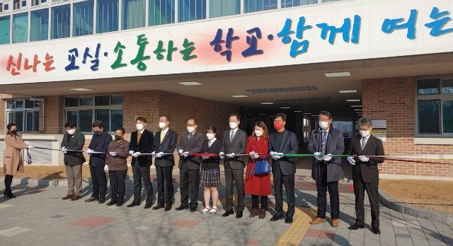 (경북= KTN) 전옥선 기자= 구미산동고등학교가 28일 다목적 강당에서 개교식을 가졌다. 이날 행사는 임종식 경상북도교육감, 신동식 구미교육지원청교육장, 장세용 구미시장, 김영식 국회의원, 정세현 경상북도의원, 변우혁 학교운영위원장을 비롯한 여러 내빈과 학부모가 첨석한 가운데 테이프커팅, 기념식수 및 교기 수여 등으로 이어졌다. 개교 행사는 코로나 방역 지침을 준수하며 실시됐으며 학생 및 학부모는 유튜브 실시간 방송으로 시청했다.