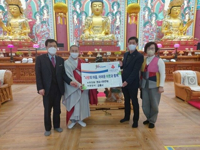 최성국 형곡2동장은 매년 어려운 이웃을 위한 성금기탁으로 따뜻한 나눔을 실천해 주고 있는 금룡사에 깊은 감사를 드렸으며 앞으로도 지속적인 관심을 당부하였다.