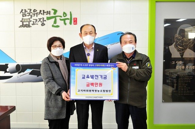 (전국= KTN) 김도형 기자= 고지바위권역영농조합법인 사공록 대표는 지난 27일 군위군청을 방문하여  지역의 교육발전과 인재양성을 위해 써달라며 교육발전기금 100만 원을 기탁했다.
