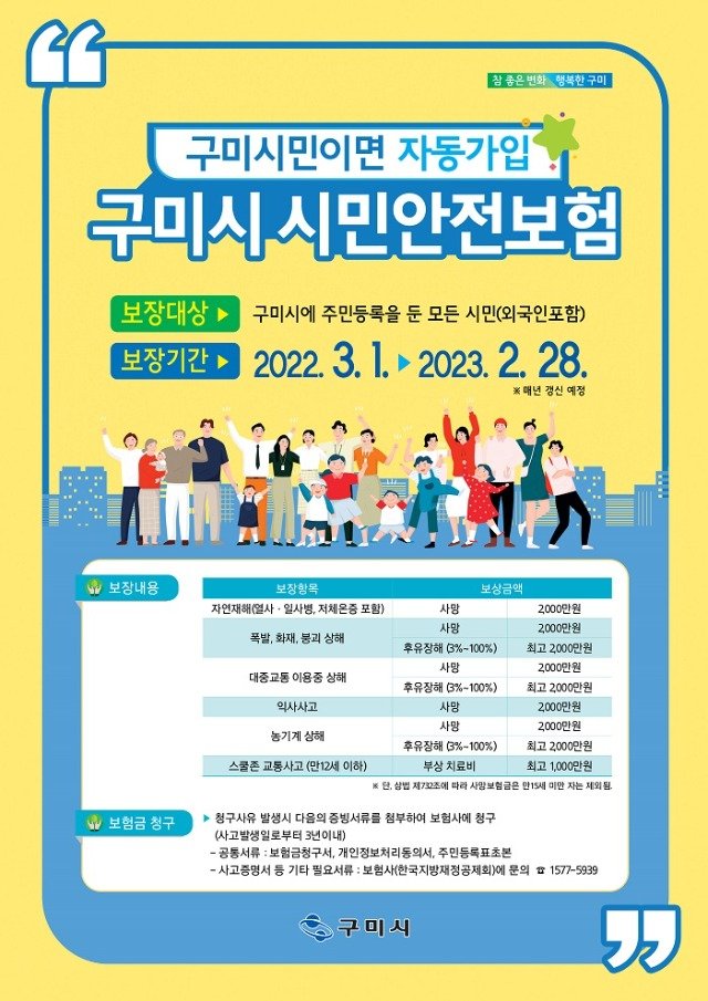 구미시민이라면 누구나, 1년 365일 안전하게! 재난대비 사회안전망 강화, 「구미시민안전보험」가입