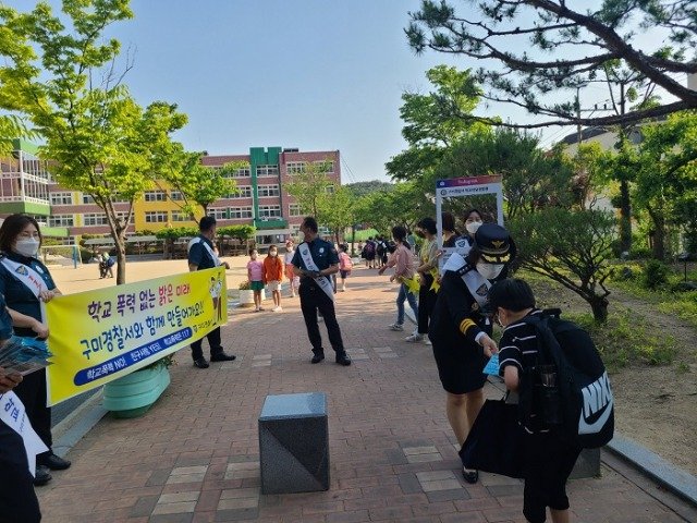 (전국= KTN) 김도형 기자= 구미경찰서(서장 김우락)는 24일 형일초등학교 정문에서 시청, 교육청, 모범운전자, 녹색어머니회 등 유관 기관과 협력하여 전교생 502명을 대상으로 등굣길 학교폭력 예방 캠페인을 실시하였다.