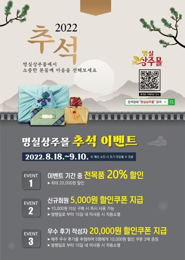 명절선물은 ‘명실상주몰’에서! 추석맞이 전품목 20% 할인이벤트 진행