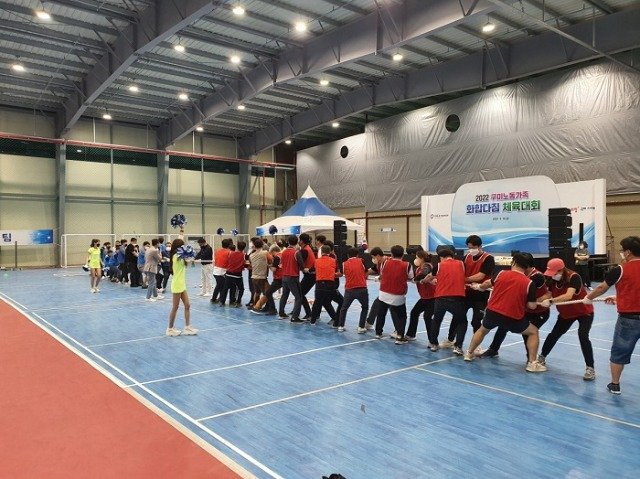 (전국= KTN) 김도형 기자= 구미시(시장 김장호)는 9. 16(금) 09:00 예스구미스포츠파크에서 근로자 가족등 400여명이 참석한 가운데 한국노총 구미지부(의장 전상구) 주관으로“2022 구미 노동가족 화합다짐 체육대회”를 개최했다.