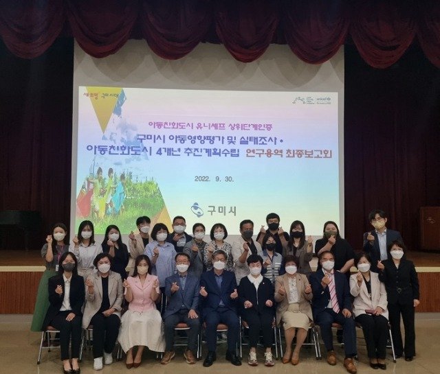 (전국= KTN) 김도형 기자= 구미시(시장 김장호)는 9월 30일 시청 3층 상황실에서 아동친화도시추진위원, 아동참여위원, 구미시지역사회보장협의체위원 등 20여명이 참석한 가운데 『구미시 아동영향평가 및 아동실태조사』와 『아동친화도시 4개'년 추진계획수립』연구용역 최종보고회를 개최하였다.
