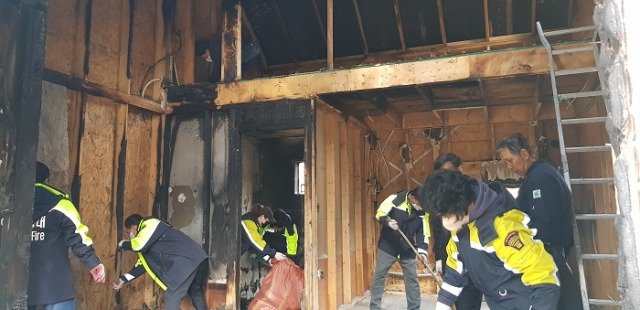 이번 화재는 실내 화목난로 과열로 인하여 발생한 화재로, 인명피해는 없었지만 벽체, 지붕을 비롯한 주택이 전소되어 남은 판넬 등 화재 폐기물을 처리해야 하는 상태였다. 이 소식을 들은 화서면 행정복지센터 직원과 화서면 남녀의용소방대 30여명은 폐기물 철거 및 청소 봉사를 실시하였다. 화재로 타다남은 데크, 조립식 판넬 등의 화재 폐기물을 청소 차량으로 옮기고 주변 정리까지 말끔하게 하여 큰 도움을 주었다.