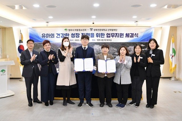 (전국= KTN) 김도형 기자= 영주시 아동청소년과는 21일 시청 제1회의실에서 경북전문대학교 산학협력단과 유아의 건강한 성장 지원을 위한 업무지원을 약속했다.