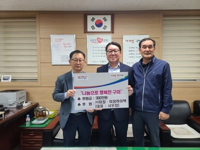 (전국= KTN) 김도형 기자= 공단동 행정복지센터(동장 송조호)는 2023. 5. 2(화) 10시 관내 기업체인 ㈜미창·미창하이택(대표 서우창)으로부터 저소득 한부모가정을 위한 성금 300만원을 기탁 받았다.