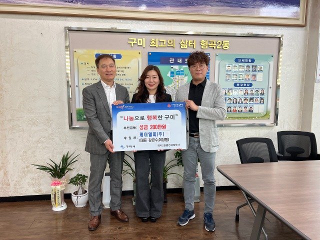 강경수 대표는“소외되고 어려운 이웃들에게 어린이날과 어버이날을 맞아 따뜻한 이웃의 정을 전할 수 있어 기쁘다”며 기탁의 뜻을 전했다. 케이엘피(주)는 형곡동 소재 건설업체로, 강경수 대표는 평소 봉사 및 나눔 활동에도 지속 참여해 지역사회에 공헌하고 있다.
