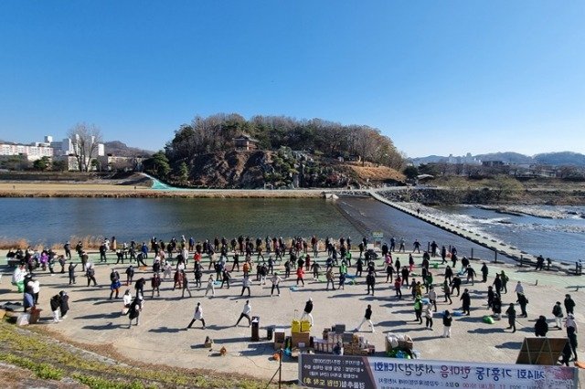 영주-10-2 가흥1동 한마음 서천 걷기대회 참가자들이 준비운동을 하고 있다.jpg