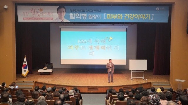 이날 강연에서 함익병 원장은‘피부와 건강이야기’라는 주제로 아름다운 피부와 건강한 삶을 위한 비법에 대해 이야기했으며, 특유의 진솔하고 재치 있는 입담으로 청중으로부터 큰 공감과 호응을 얻었다.