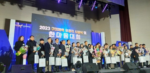 (경북= KTN) 전옥선 기자= 구미시 체육회(회장 윤상훈)는 18일 복합체육센터 다목적 체육관에서 김장호 시장을 비롯한 도‧시의원, 기관‧단체장, 체육회 임원 등 구미시체육인 520여 명이 참석한 가운데 「2023년 구미체육 유공자 시상식 및 한마음대회」를 개최했다.