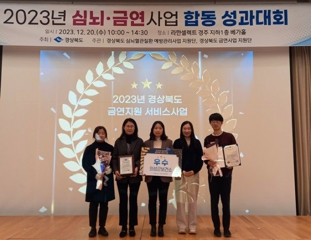 (전국= KTN) 김도형 기자= 의성군(군수 김주수)은 지난 20일 경상북도에서 주관한 심뇌·금연 합동 성과대회의 금연지원서비스사업 부문에서 도지사 표창을 수상했다. 이는 2021년 최우수, 2022년 우수상에 이은 3년 연속 수상이다.