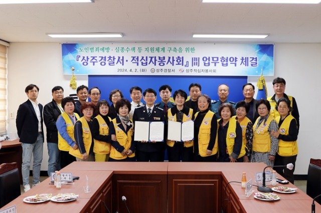 (전국= KTN) 김도형 기자= 상주경찰서(서장 박재흥)는 지난 2일 대한적십자봉사회 상주시지구협의회(이하 상주적십자봉사회)와 노인 범죄예방 및 실종 수색활동 등 협업체계 구축을 위한 업무협약(MOU)을 체결했다고 밝혔다.