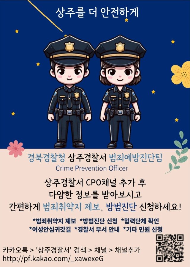 국민 누구나 쉽게 접할 수 있는 카카오톡을 채널 서비스를 활용, 상주경찰서 범죄예방진단팀에서 운영중인 카카오톡 채널을 추가한 후 범죄예방 관련 정보를 24시간 제보 가능하다.