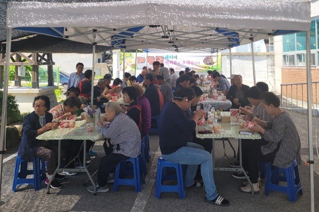 이날 봉사에는 오주엽 목사를 비롯해 교회 신도들이 참여해 지곡교회에서 주민 150여명에게 정성스럽게 준비한 자장면과 다과를 대접했다. 또, 지역 어르신들의 건강상태와 안부를 확인하고 이웃의 안부를 묻는 훈훈한 시간을 가졌다.