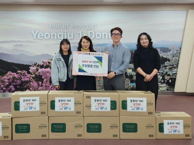 [한국유통신문= 김도형 기자] 영주 문화의 거리 상인회(회장 김준호)가 지역의 어려운 이웃을 위해 따뜻한 마음을 전했다. 상인회는 10월 17일 영주1동행정복지센터에 물티슈 400개를 기부하며 나눔의 뜻을 실천했다.