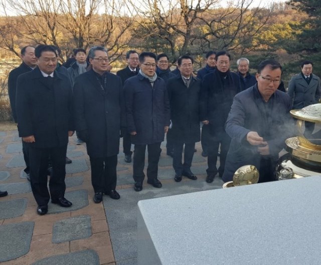 “방금 최경환 대표께서 전직 대통령 묘역 중 여기가 제일 아름답고 아늑해 김대중 대통령님 성품을 그대로 닮았다고 말씀하셨는데 감회가 새롭다.