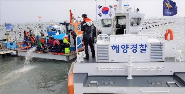 완도해경, 진도 해상 5톤 침수선박 배수 작업 후 예인