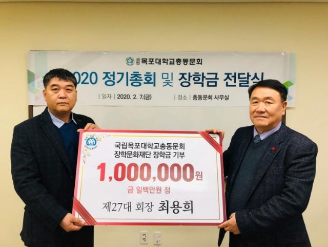 목포대학교 총동문회 정기총회 및 장학금 전달식 개최
