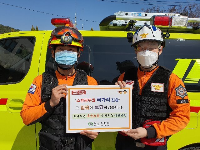 (전국= KTN) 윤진성 기자=보성소방서(서장 정대원)는 국민들의 지지와 격려로 4월 1일 전국 모든 소방공무원이 국가직으로 전환됨에 따라 감사 인사를 전했다.