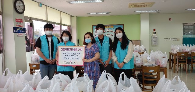 이날 전달된 물품은 코로나 19 확산으로 인해 집단 급식을 운영할 수 없는 상황에 결식 우려가 있는 저소득 어르신(150여 명)들께 대체식품 꾸러미로 안겨드렸다.