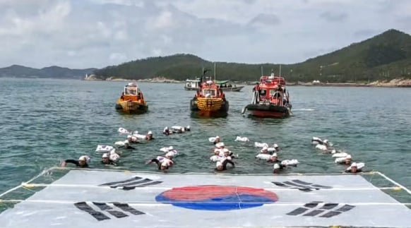 (전국= KTN) 윤진성 기자=완도해양경찰서(서장 박제수)는 11일 완도군 신지면 명사십리 해수욕장 해상에서 민․관이 합동하여 광복절을 기념하는 행사와 맨몸수영 훈련을 실시했다고 밝혔다.