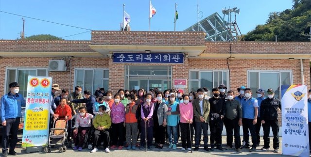 이날 완도해경은 충도 주민을 위해 민‧관과 협업하여 △코로나19 방역 및 마스크 배부 △수중정화활동 △V-PASS장비 사용법강의‧점검 △선박 통신장비 점검수리 △찾아가는 법률상담 서비스 △미용서비스 △돋보기 수리 △의료서비스 등을 지원했다.